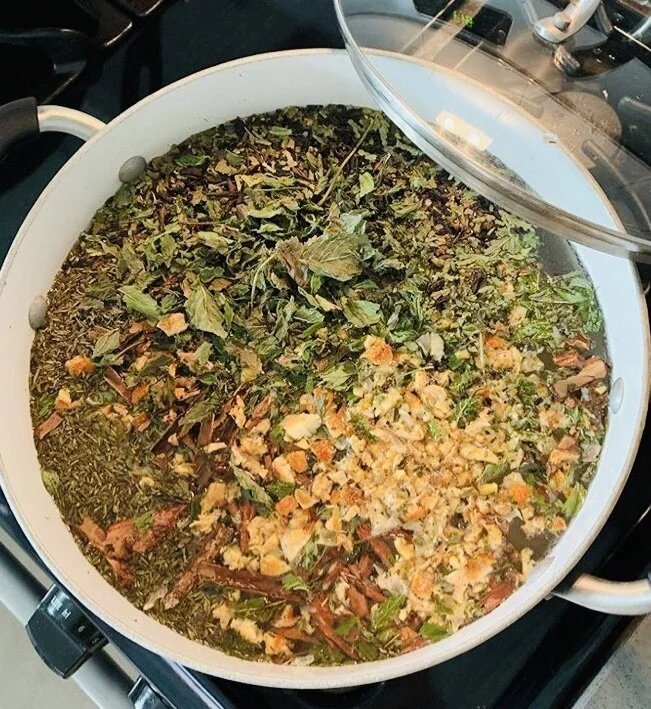 Herbal steam to clean the air in our home during this time of smoke, fires, and extremely unhealthy air quality. Try it! The blend of bacteria killing cinnamon, orange peels, oregano, lavender and peppermint gets me excited for the holiday season smells to come. Simply boil water, throw in your herbs, let simmer with lid cracked so steam can fill the air.